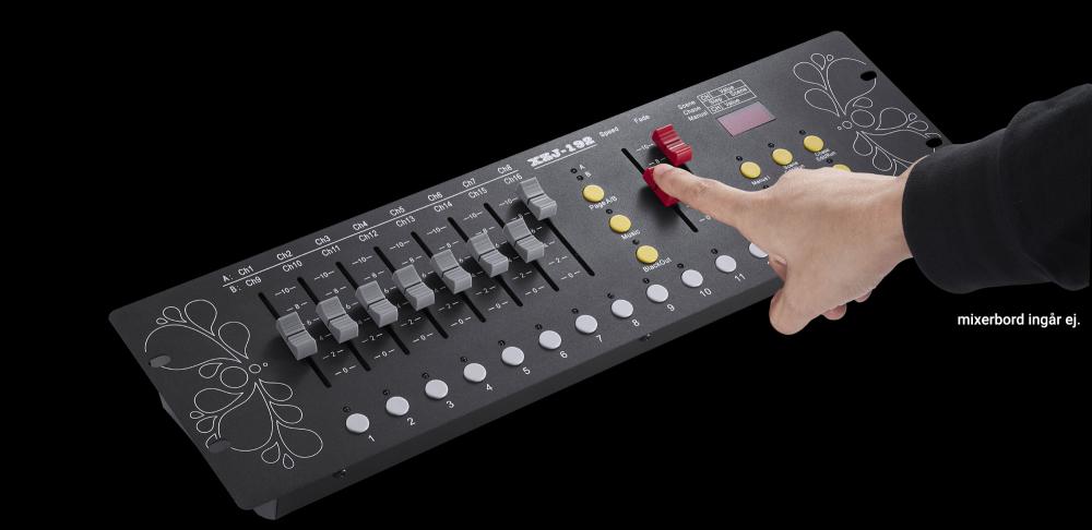 DMX är en standard för överföring av data och för att styra och kontrollera belysningar från t.ex ett mixerbord eller kontrollrum. Här har vi samlat belysningar, som har DMX-stöd. Standard kontakt enligt DMX-standarden är rund 5-pin XLR-kontakt (men även 3-pin XLR) och RJ45 kan förekomma. Framförallt på senare tid så har RJ45 (typ Nätverkskontakt) blivit vanlig som DMX-kontakt på många belysningar.