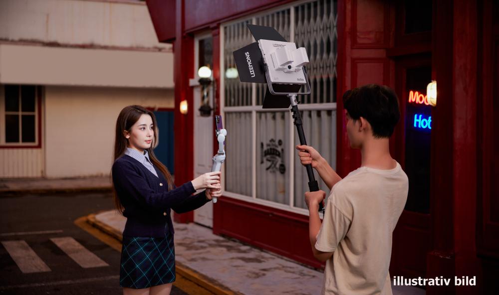 LED-paneler är smidiga att använda när man filmar utomhus. Ofta vill man få upp belysningen över ögonhöjd när man filmar. Då kan det vara smart att använda en Godox AD-S13 Light Bom så att man kan hålla belysningen högt utan att behöva sträcka på armarna. (AD-S13, batterier och laddare ingår ej).