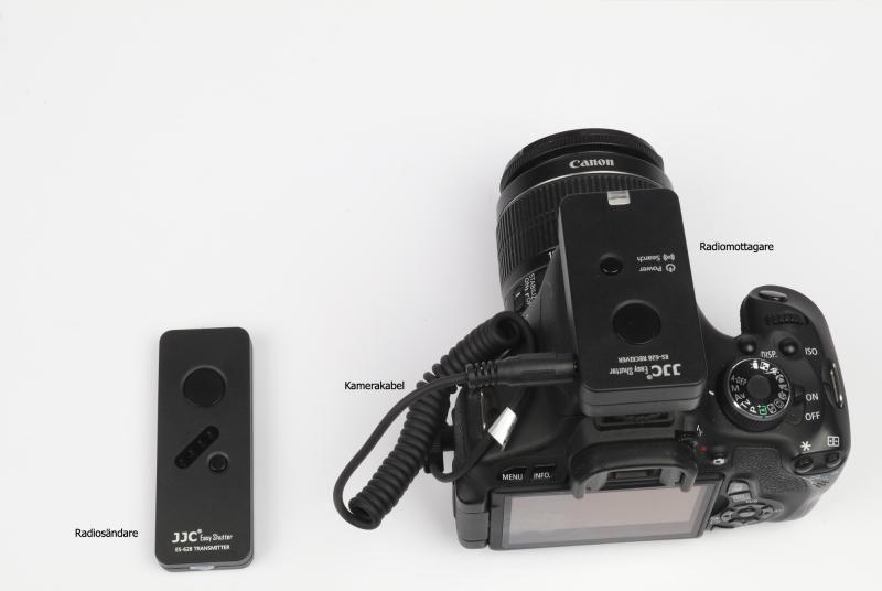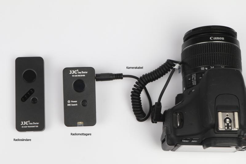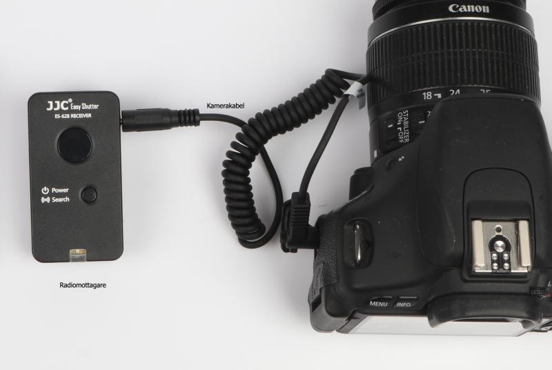 Anslut kamerakabeln mellan radiomottagaren och kamerans uttag för fjärrutlösare.