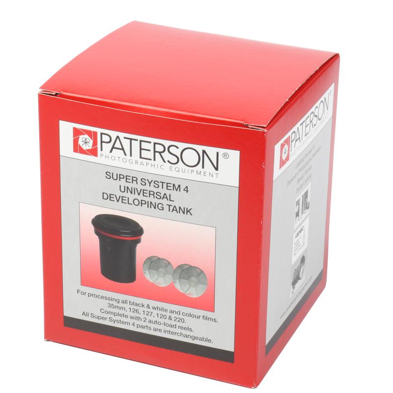 Paterson Super System 4 är världens mest använda framkallningssystem. SuperSystem 4-dosorna laddas mycket enkelt och tack vare den "tratt-formade" öppningen går de mycket snabbare att fylla och tömma än andra framkallningsdosor. Att framkallningsdosan går snabbt att fylla och tömma fullständigt på bara några sekunder är viktigt bland annat för att få jämnt framkallade filmer.