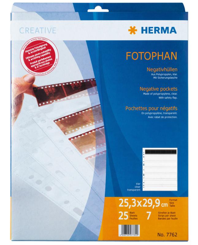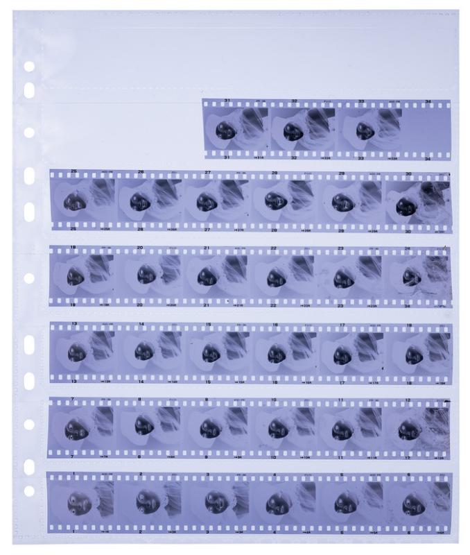 Transparenta (klara) negativblad i Polypropylen (PP) för säker arkivering av värdefulla negativ. Förpackningen innehåller 25 blad för 135-film, med 7 fickor om 6 negativ. Negativbladen är tillverkade Polypropylen och fritt från mjukgörare. Testade på laboratorium. Den breda sidan på varje kanal är öppen, som gör det enkelt stoppa in negativremsor ovanifrån. Säkringsflik ser till att negativremsan hålls på plats.