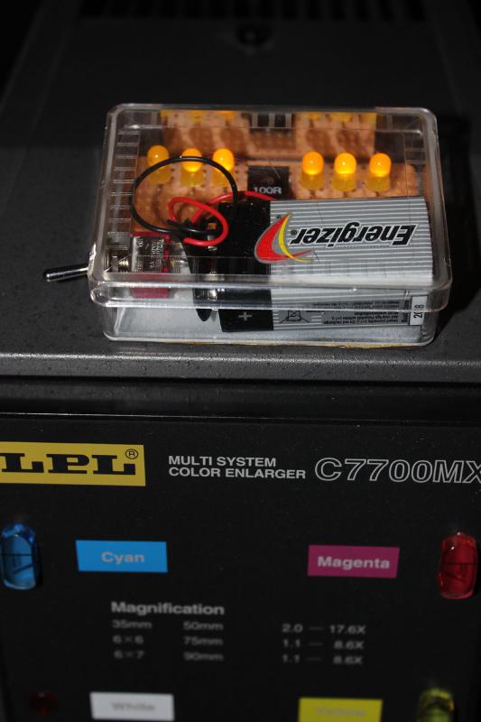 Om man har elektroniska kunskaper och utrustning, så kan man löda ihop en belysning för färgpapper. Det kostar inte många kronor i inköp av komponenter. Komponenter kan t.ex köpas från Elfa. Välj lysdioder med exakt rätt våglängd. (Se datablad för färgpapperet. Testa att googla....). Man får att räkna med att testa sig fram.