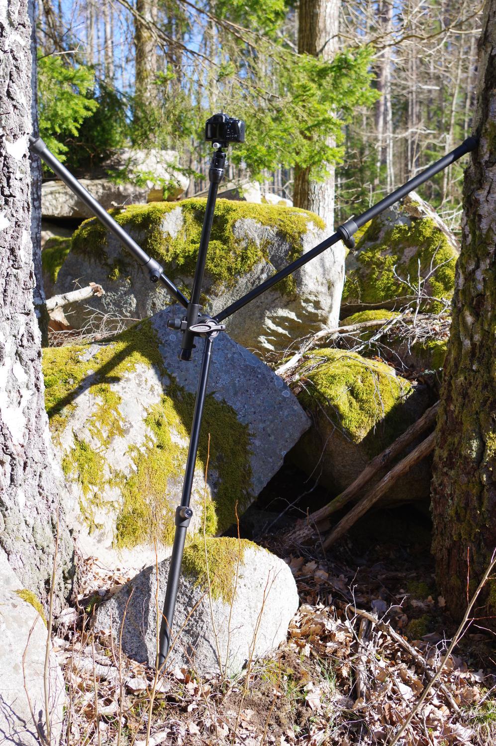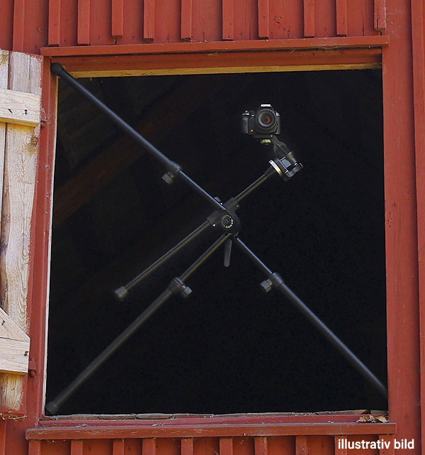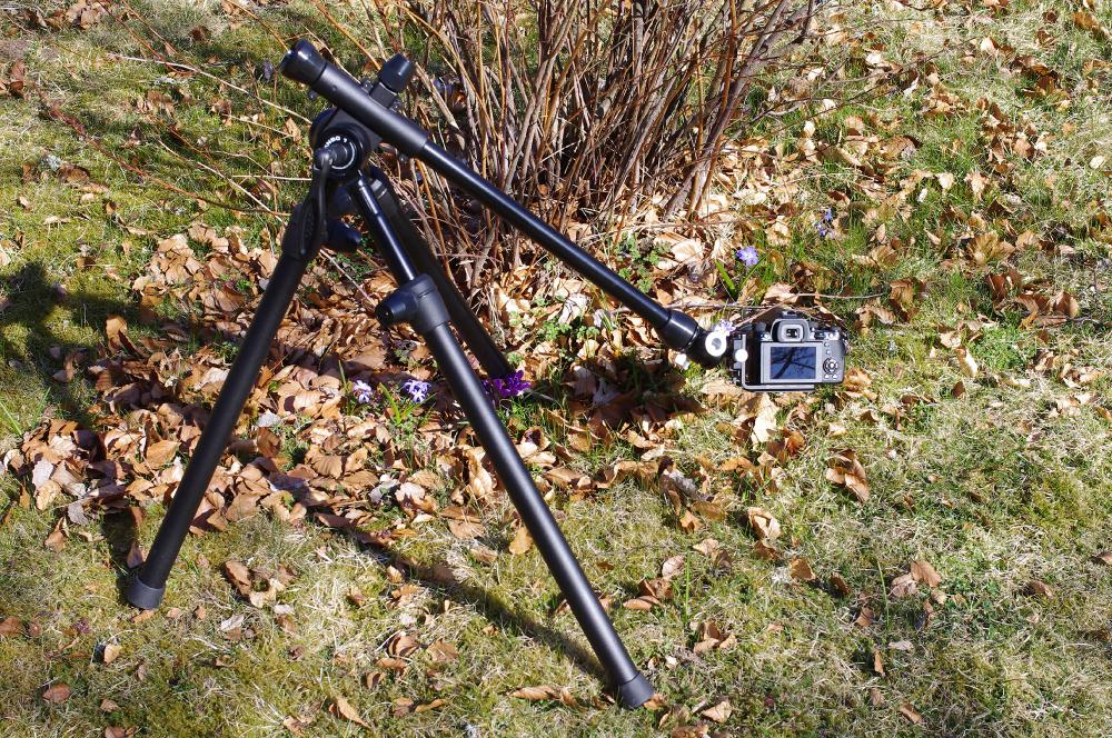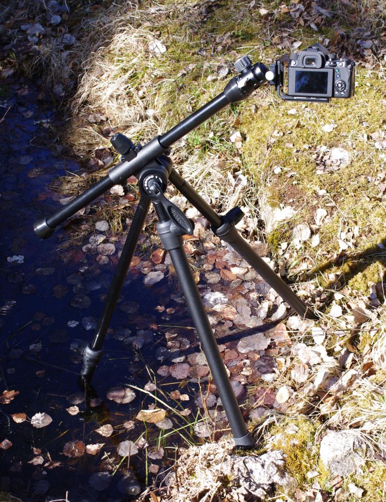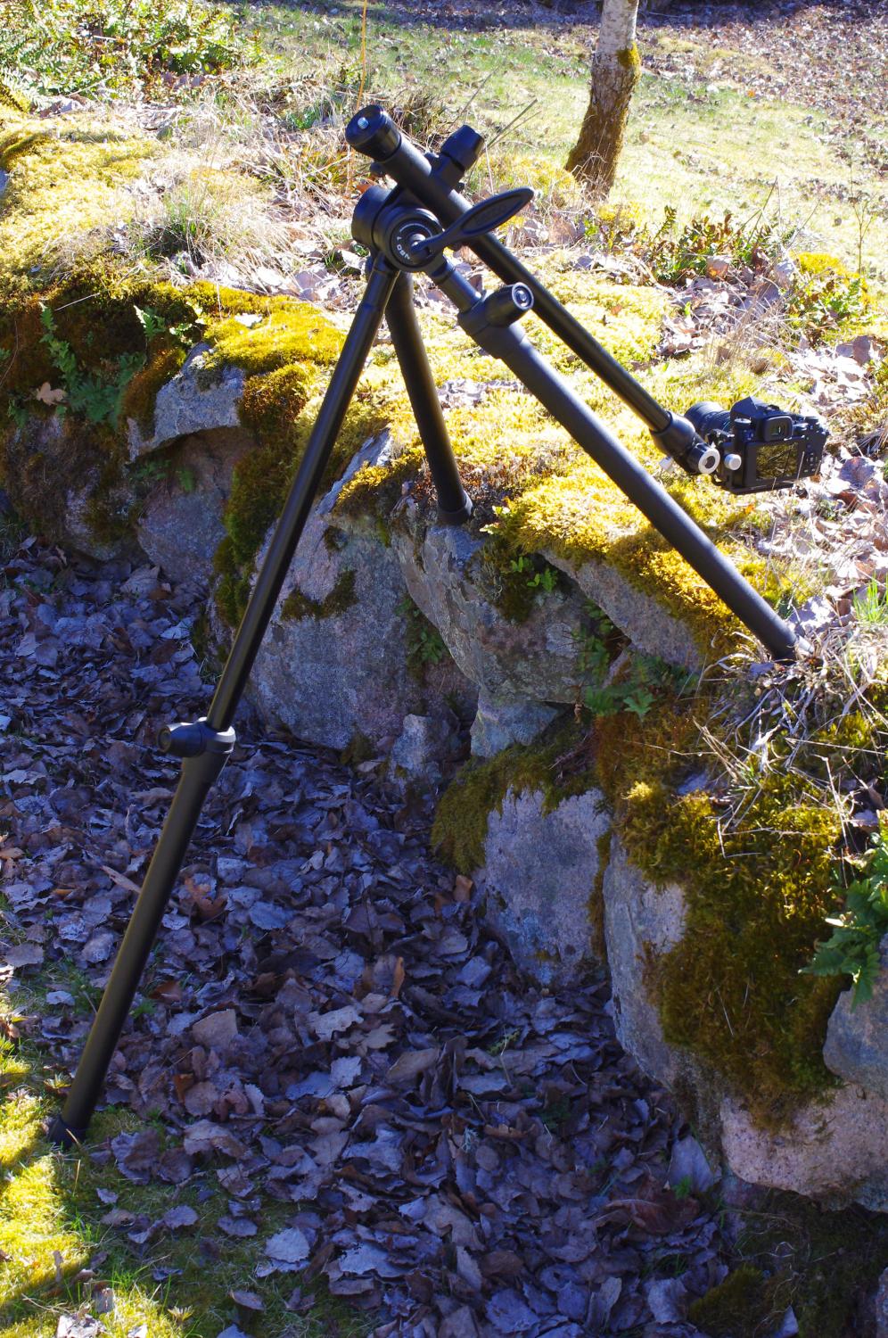 Om det någonsin, vid något tillfälle, skulle behövas så kan Benbo-stativet användas med ett ben neråt, ett ben uppåt, tredje benet rakt åt sidan och mittpelaren i horisontellt läge.