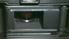 på kamerans insidas botten, precis framför filmen, för att därefter reflekteras upp på filmen.
