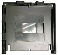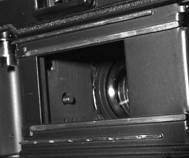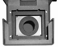 Bilderna visar: En europeisk 4x5”-kameras optikplatta bakifrån, optikplattan är maskad med tre remsor ”sammet” för att verkan av ströljusmaskningen skall bli tydlig.