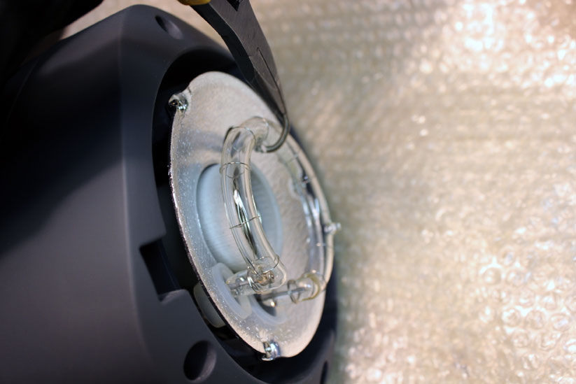 4. Avlägsna paraplyreflektor och inställningslampa, så att det är lättare att komma åt blixtröret.