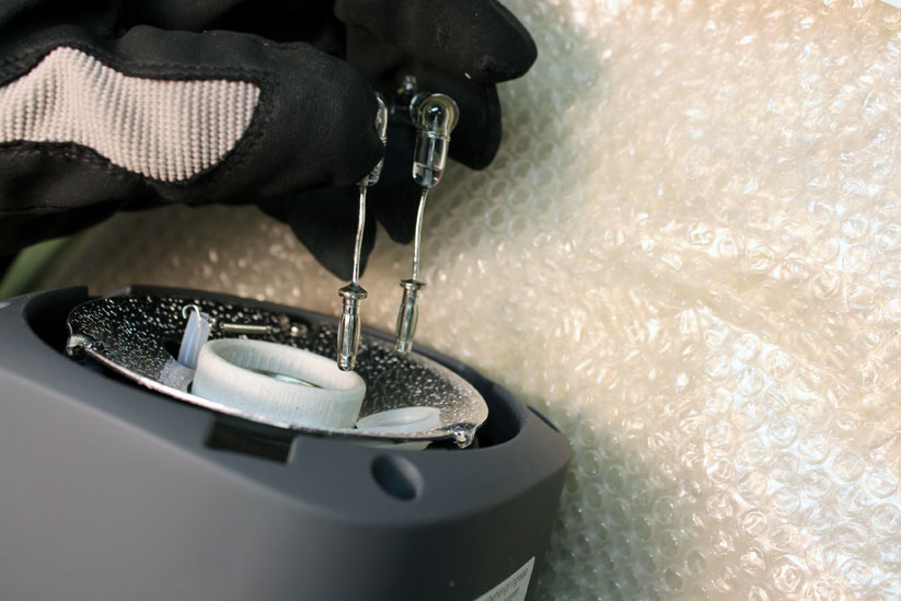 6. Använd handskar. När tändtråden är bortkopplad, så kan man dra försiktigt blixtröret rakt ut så att det lossnar från sina kontakter.