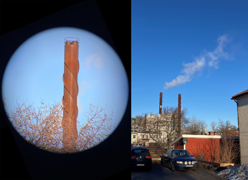 Bilden ovan: Plåtad med Vanguard Vesta 8320M och iPhone Se. Motivet är skorsten på Kährs industribyggnad i Nybro.