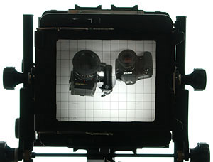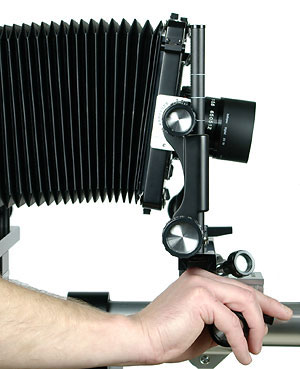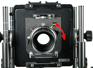 Vid behov används bakre standarten för att restituera/ändra motivets form. Efter att ha lagt skärpan kan man behöva höja(Rise) bakstycket för att "hämta in" bilden. Kontrollera skärpan med hjälp av en mattskivelupp.