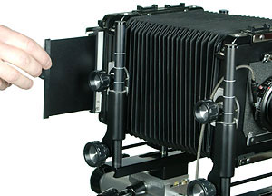 Använd kassettlocket (darkslide) för att begränsa det ljus som faller på optik/filter.