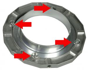 4. Lossa skruvarna och låsskruven så att speedringen (för Bowens) kan avlägsnas.