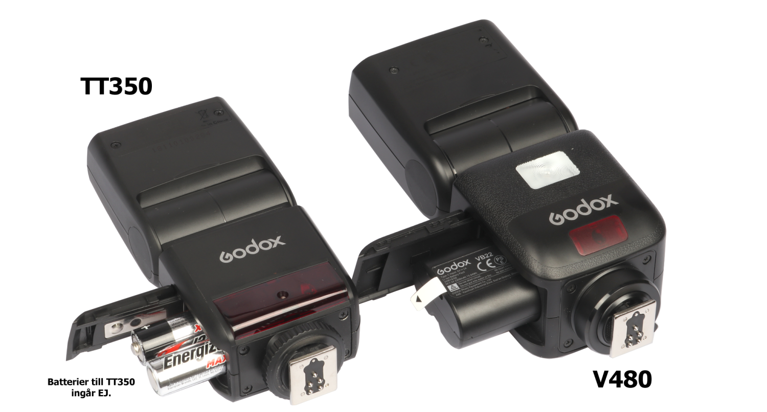 Vi kollar närmare på Godox V480 och jämför den med Godox Thinklite TT350. (Blixtarna finns för Canon, Nikon, Sony mm.).