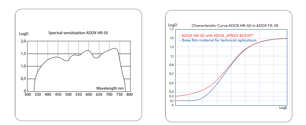 ADOX HR-50 (135-36) är en mycket finkornig svartvit film, med exceptionellt hög upplösning och detaljrikedom. Den lämpar sig särskilt väl för gatufotografi och arkitekturbilder, men kan även användas för porträttfotografering. Filmen är superpankromatisk och är känslig för alla våglängder av synligt ljus. Filmen har utökat spektrum och kan användas som en infraröd film med t.ex IR720-filter.