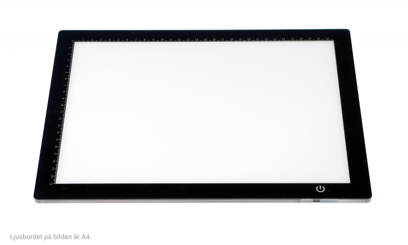 Art Slim är ett supertunt ljusbord (dagsljus) med jämnt och fint ljus. Ljusbordet använder modern LED-teknik, med ställbar ljusstyrka (dimmer-funktion) via touch-knapp. Till skillnad från liknande ljusbord, så har Art Slim ljusbordet en helt annan konstruktion, med diffusorskiva istället för en matris/nät, vilket är en förutsättning för att kunna fota av negativ/dia utan att små ljuspunkter syns. Ljusbordet har flera användningsområden och kan användas för betraktning av t.ex negativ, ritningar eller röntgenplåtar. Perfekt att använda som underbelysning vid avfotografering av dia och negativ. Art Slim ljusbordet kan även användas för kopiering, stencilering, kalkering av skisser, fotografier mm. Ena lång- och kortsidan på ljusbordet har centimeter-skalor. Ljusbordet har en tjocklek på bara 7mm. Använd medföljande USB-kabel med USB-A kontakt för att driva ljusbordet. Det går strömförsörja ljusbordet om man ansluter ljusbordet till USB A-kontakten på t.ex en powerbank eller till en mobil-laddare. (Nätadapter 230V finns att köpa till.)