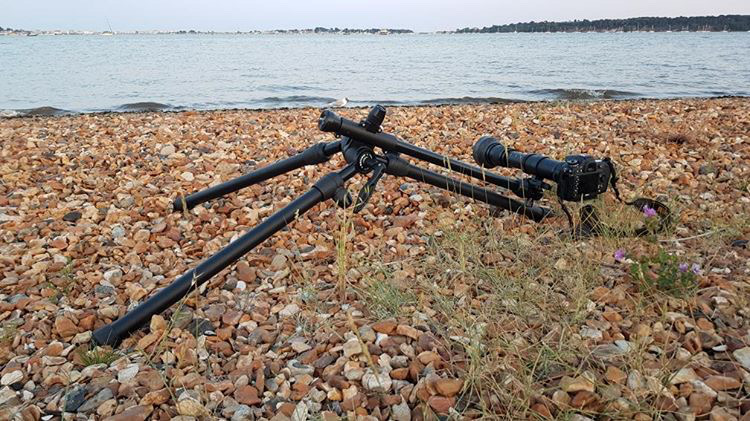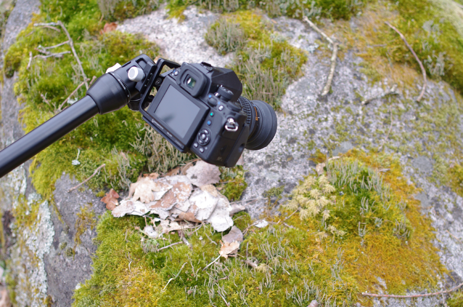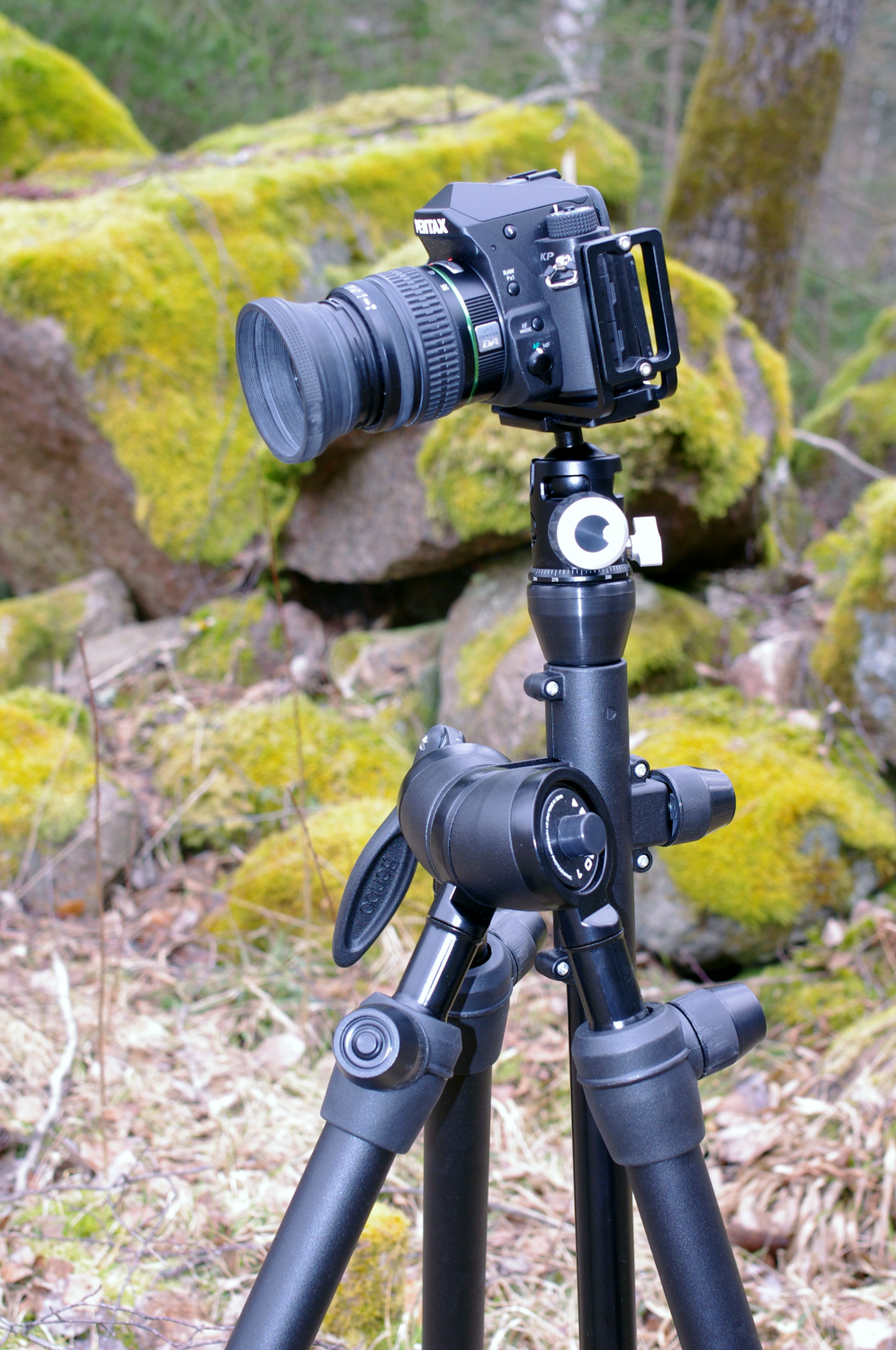 illustrativ bild. Till skillnad från vanliga stativ, så kan varje enskilt ben vinklas och placeras där det får bäst fäste. (Kulled, kamera, fotoväska mm ingår ej.)