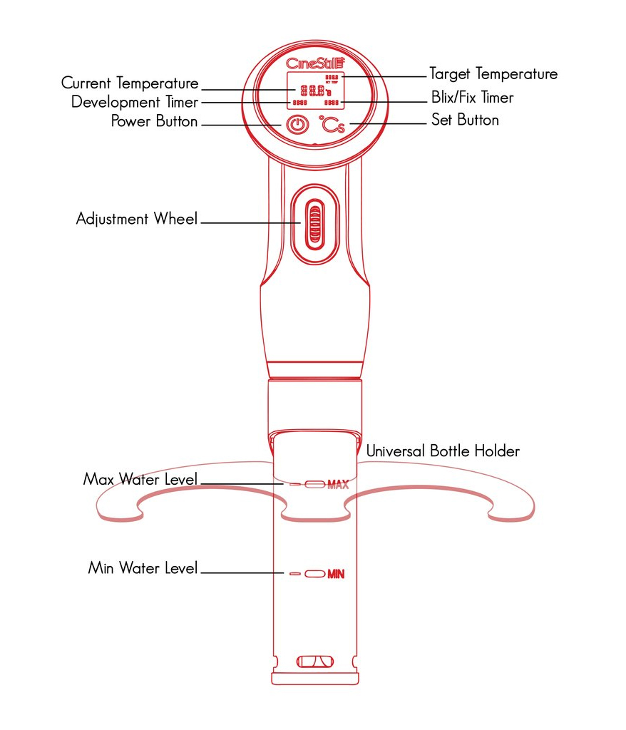 Cinestill °CS TCS-1000 Temperature Control System är en enkel och pålitlig lösning för precisionsframkallning av färgfilm i hemmet. Systemet används främst för framkallning av negativ färgfilm (C-41) och positiv färgfilm/diafilm (E-6), där det är avgörande att hålla en mycket exakt temperatur, vanligtvis 38 °C.