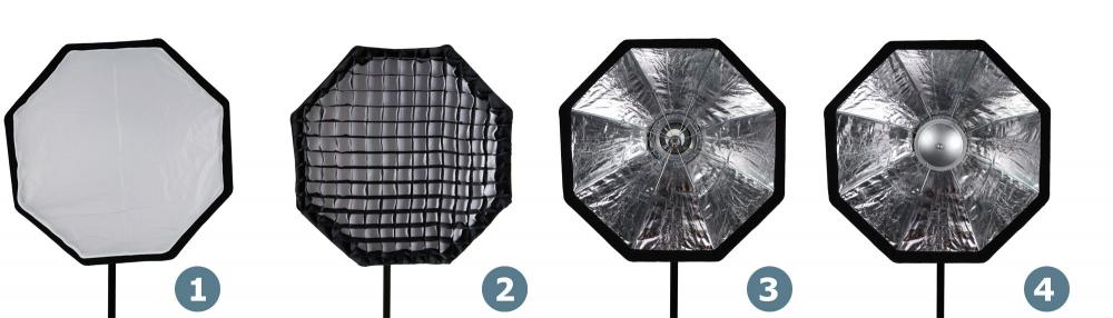 - Octoboxen med diffussonduk för ett mjukt och fint ljus.