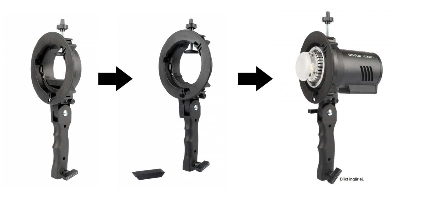 (Kan även användas på runda blixtar, som t.ex Godox V1, AD100 Pro och AD300 Pro blixtar eller Profoto A1, A10). - Kan användas med studioblixtar, med Bowens-fattning.