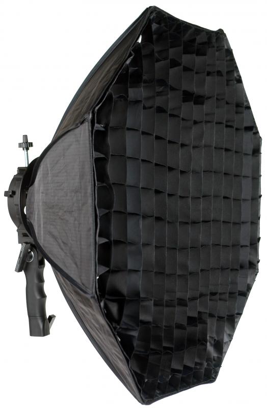 - Octoboxen med diffusionsduk och raster för ett mjukt och riktat ljus.