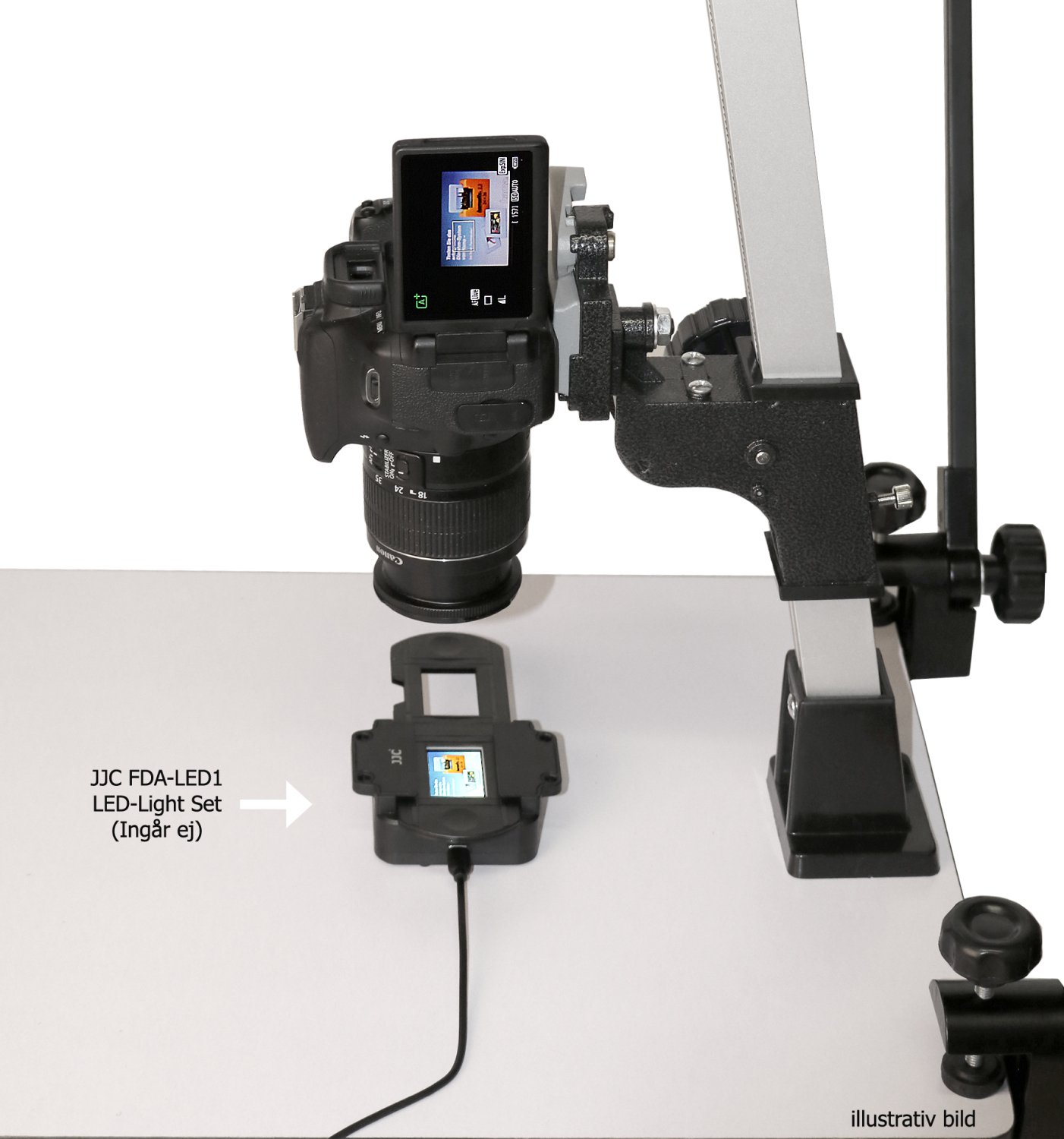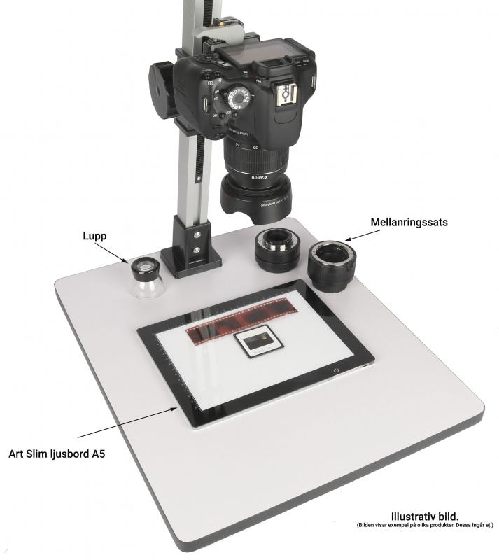 Vissa bilder är illustrativa (Ljusbord, kamera, mellanringar mm ingår naturligtvis ej.)