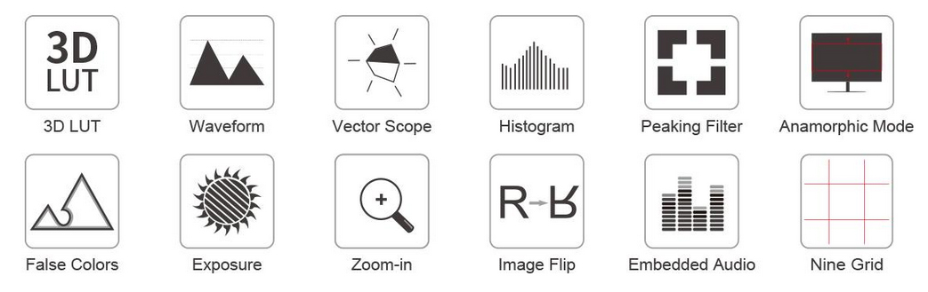 Feelworld FW568 V3 har många smarta funktioner, som t.ex 3D LUT, Waveform, Vector, Histogram, Anamorphic Mode mm.