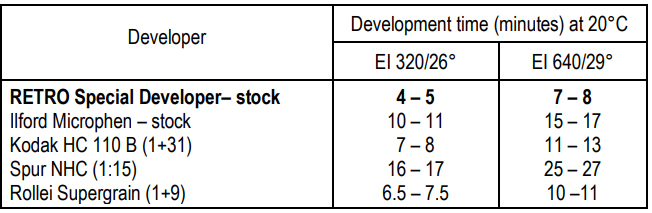 Foma Retropan 320 är en svart/vit 4x5" bladfilm, med fint korn, bra upplösning och konturskärpa. Filmen kännetecknas av ett brett omfång (av mellantoner) och en mjuk retro-look. Filmen har en känslighet på ISO 320, men kan överexponeras (+1 steg) eller underexponeras (-2 steg) med gott resultat. Filmen bör framkallas i Foma Retro Special Developer för bästa resultat.