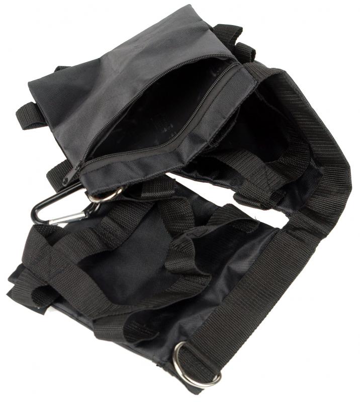Fotobestway 1044C är en 3-delad "sandsäck", för både sand och PET-flaskor. Perfekt att använda när man vill förbättra stabiliteten på belysningsstativ genom att sänka tyngdpunkten. Tack vare att sandsäcken har en 3-delad konstruktion, så är det enkelt att fördela vikten jämnt runt belysningsstativet. Förutom 3 st fickor för sand så har sandsäcken även hållare för 6 st vattenflaskor (50cl). Det är i många situationer både lättare och enklare att använda vattenflaskor än sand. Sandsäcken består av slitstark canvas och har tre fickor (med gummerad insida och dragkedja). Mellan fickorna löper ett slitstarkt nylonband. Sandsäcken är även utrustad med kabinhake och ögla för ihopkoppling med varandra. Sandsäcken kan också användas som extra motvikt på bommar och bomarmar.