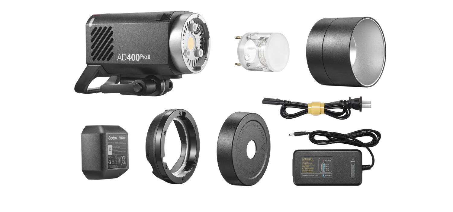 Godox AD400ProII (Version II) är en professionell, kompakt studioblixt (TTL-automatik och batteridrift), med mycket snabba uppladdningstider och enastående prestanda. Tack vare snabba uppladdningstider så kan man hålla ett högt fotograferingstempo, utan risk för svarta bildrutor eller ojämnt exponerade bildserier. En nyhet med version II är "Ultra Freeze"-läget som gör det möjligt att arbeta med extremt korta brinntider i intervallet 1/3470s ~ 1/27770s. Blixten har även stöd för High Speed Sync (HSS) och kan synkroniseras med snabba slutartider (upp till 1/8000s).