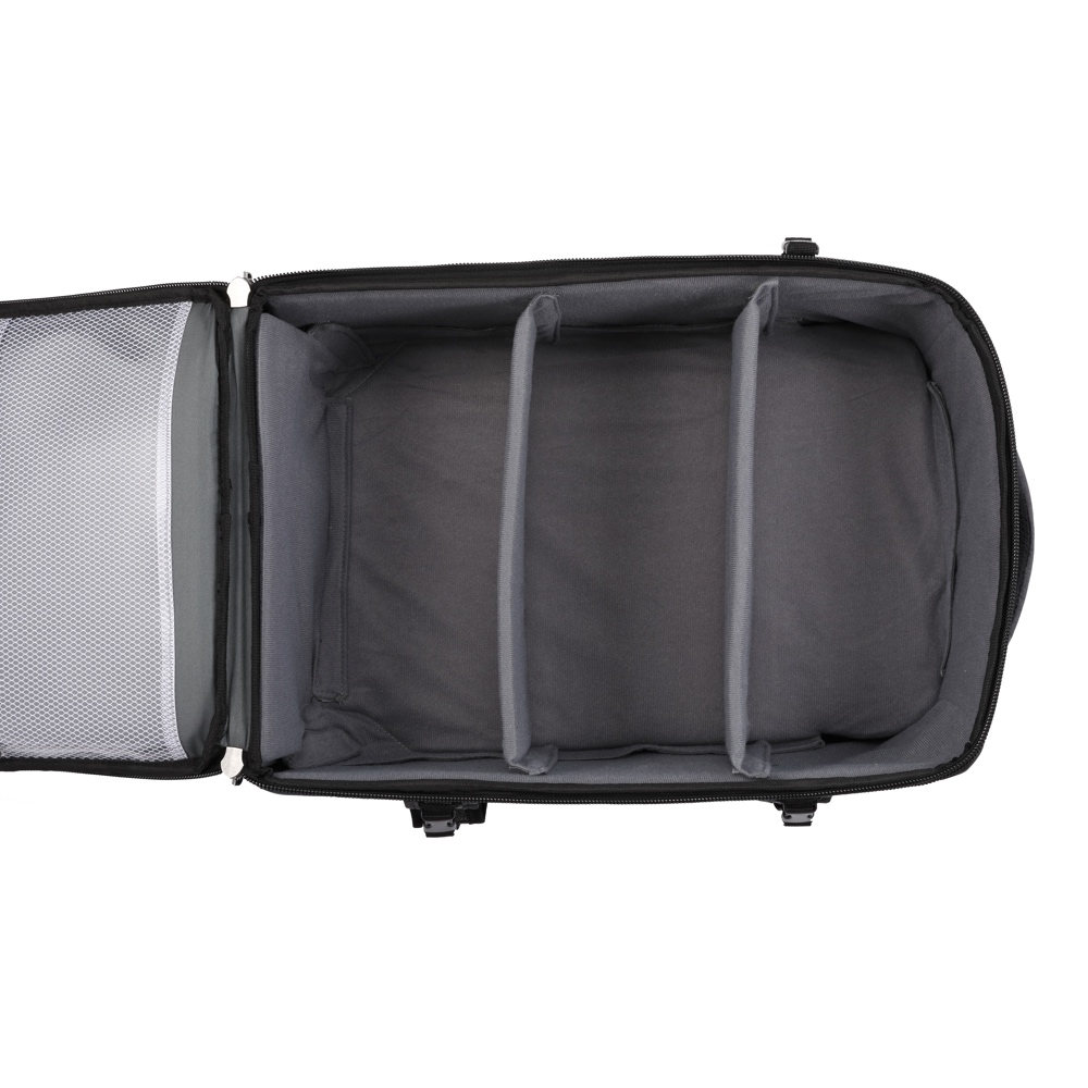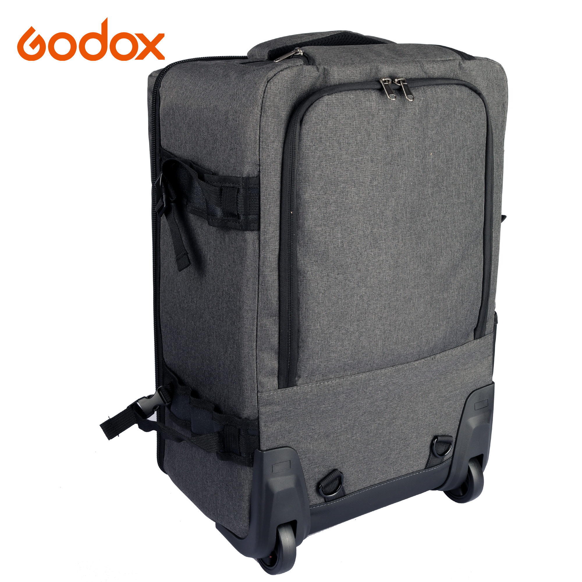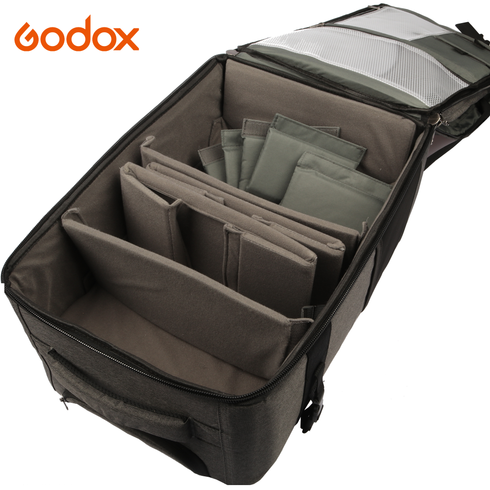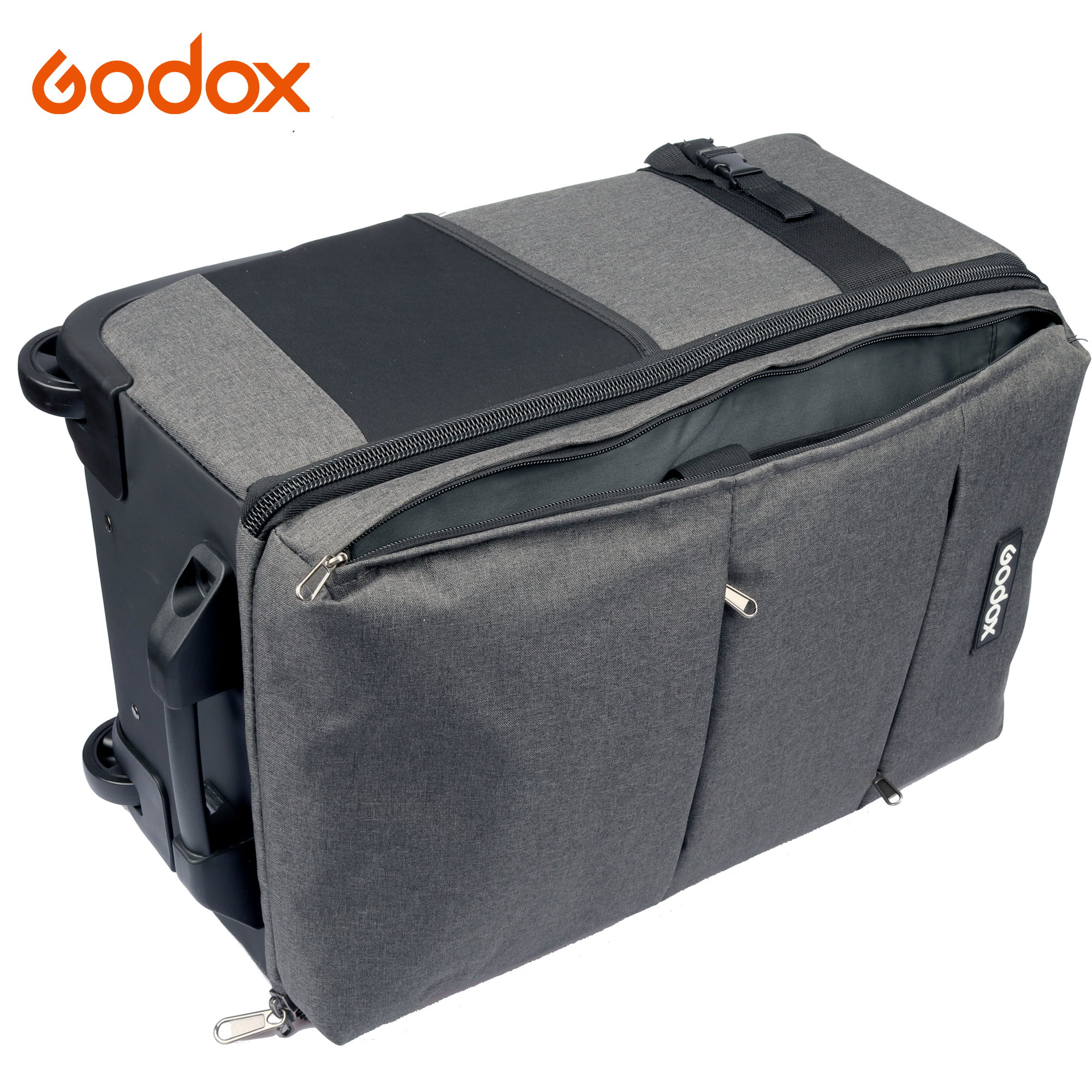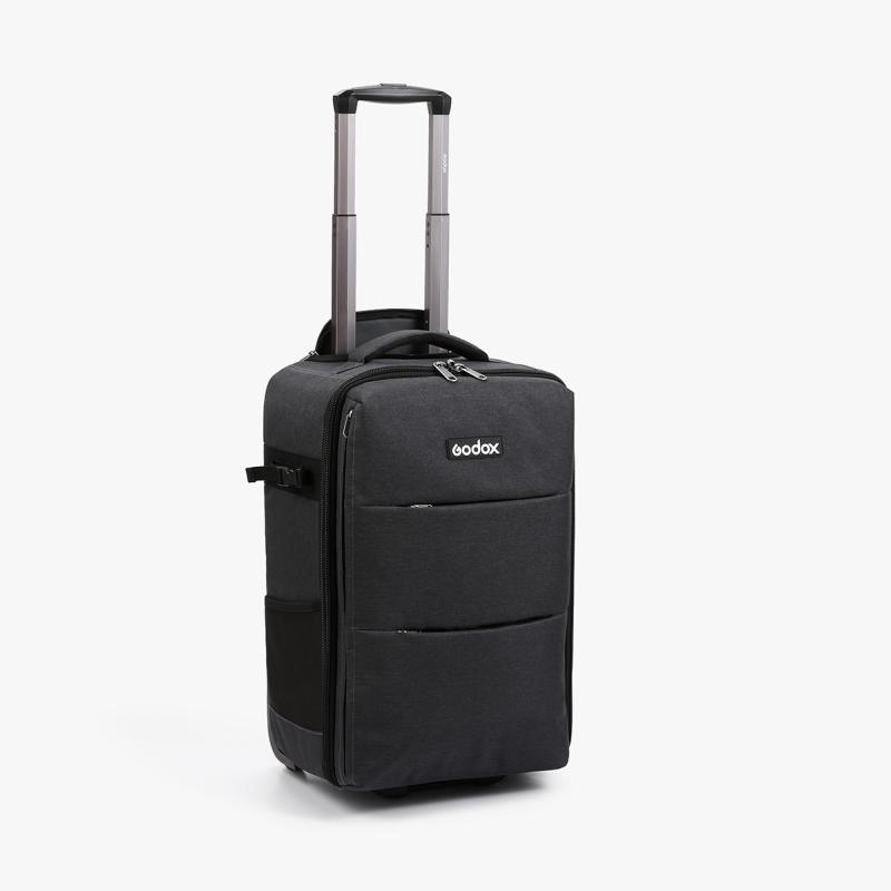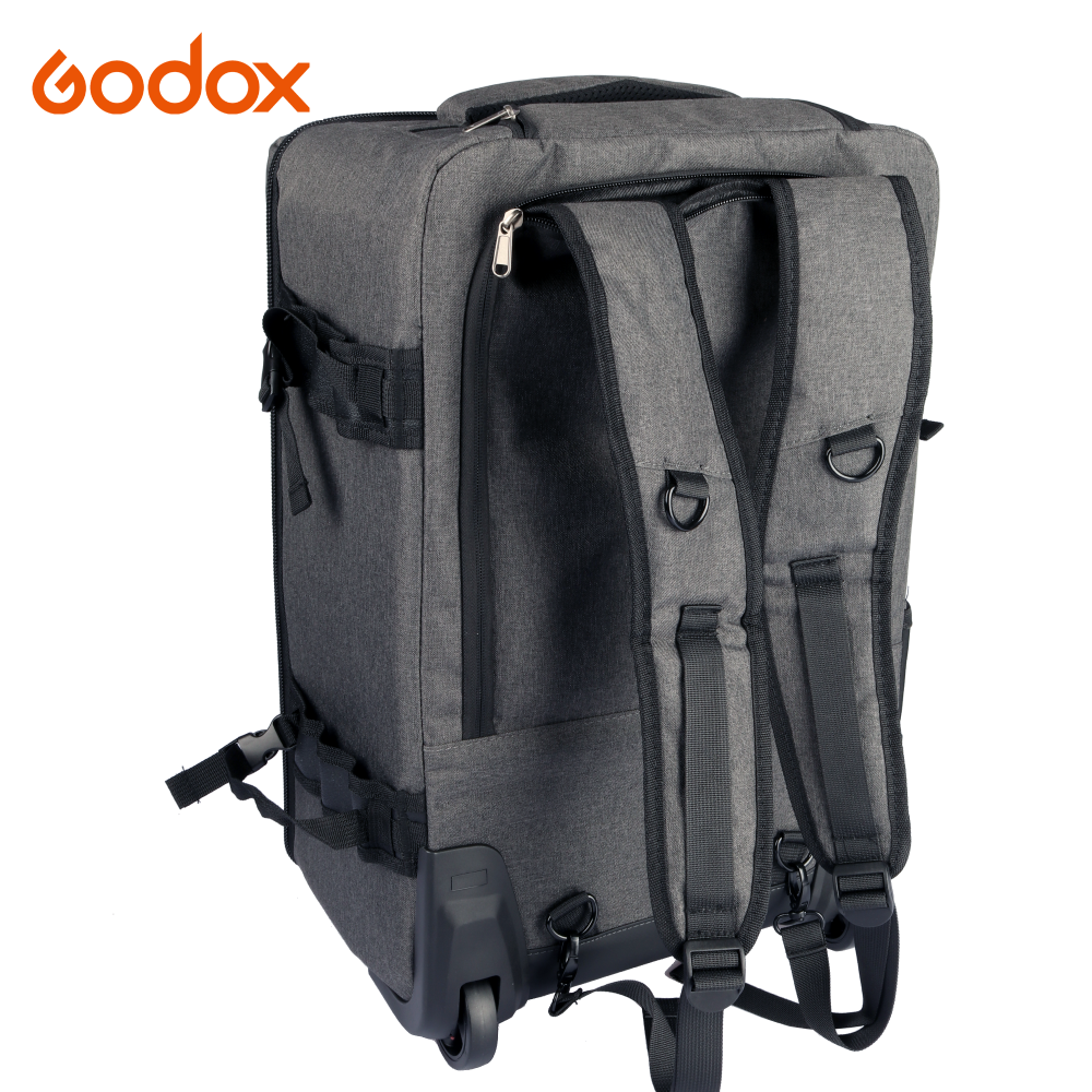 Godox CB-17 är den ultimata studioväskan (eller kameraväskan) för fotografer på språng – smart designad för att fungera både som rullväska och ryggsäck. Perfekt för dig som vill transportera din utrustning smidigt, oavsett om du reser mellan uppdrag eller jobbar Onlocation. Väskan har ett infällbart handtag och hjul för enkel transport, samt tre yttre fickor med dragkedja (varav ett är ett datorfack med dragkedja) och ett par yttre remmar för att fästa ett belysningsstativ eller stativ. Väskan kan också bäras som en ryggsäck.