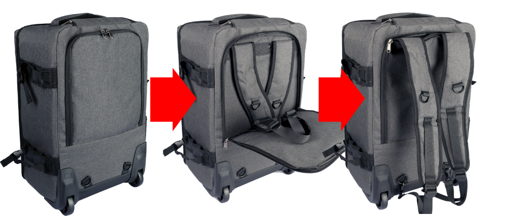 Bakom en dragkedja på baksidan av väskan finns axelremmarna som kan plockas fram om man vill konvertera väskan till en ryggsäck.