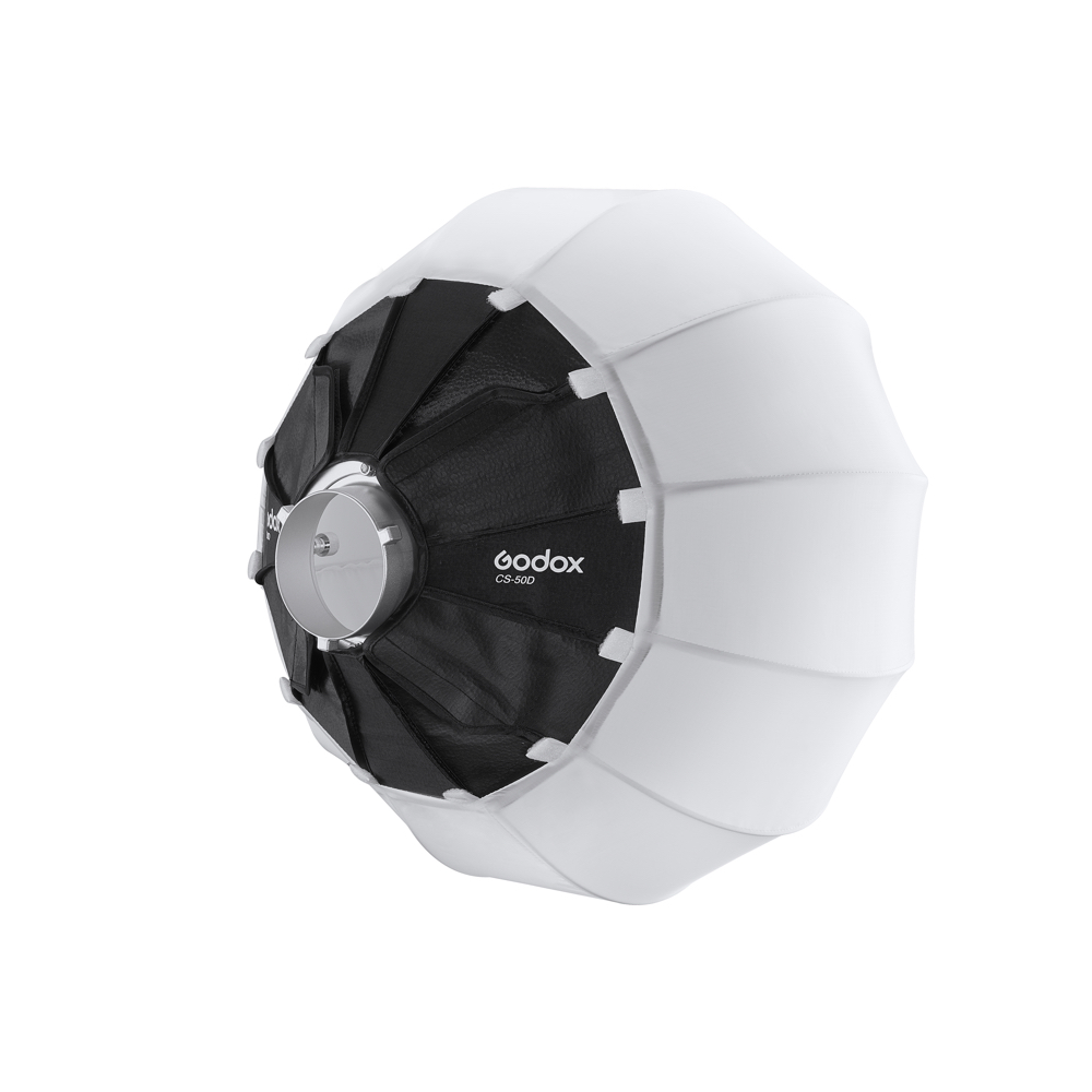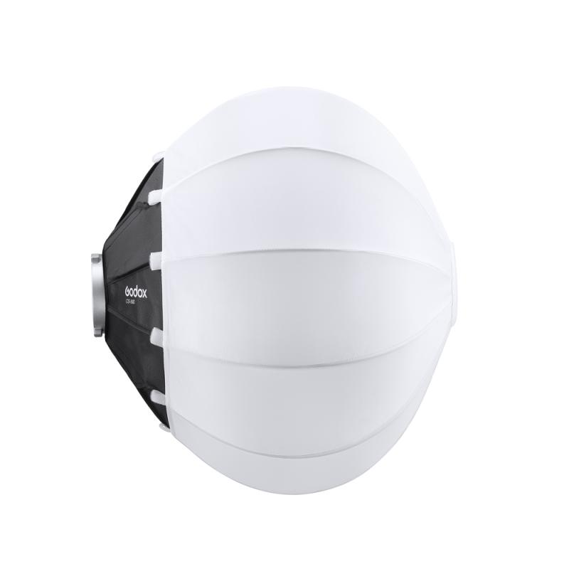 Godox CS50D Lantern ger en fantastisk ljusspridning i 270° grader och är perfekt för plåtning av större interiörer med inriktning mot t.ex mäklare, husföretag, möbelföretag, arkitektur, köks- och interiörföretag mm. Softboxen riktas normalt mot taket, som reflekterar tillbaka ljuset så att slagskuggor undviks. Vid plåtning av köksinredningar så kan man placera "globen" i brösthöjd, så att ytan under köksskåpen ljussätts av infallande ljus från globen. "Globen" har en smart konstruktion och fälls upp smidigt på ett par sekunder. Globen är mycket enkel att transportera, då den levereras i en avlång transportväska - Uppfälld så har globen en diameter på cirka 50 cm. Globen har Bowens-fattning och passar t.ex Godox blixtar med Bowens-fattning