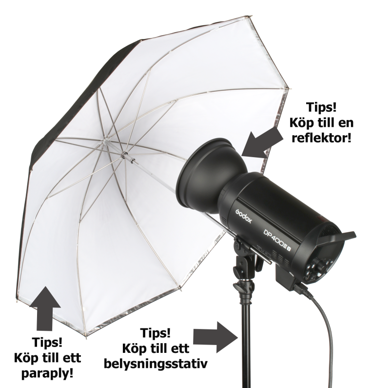 För att kunna styra blixten så måste du köpa till en radiosändare som du monterar på kameran. (Se underst på sidan).
