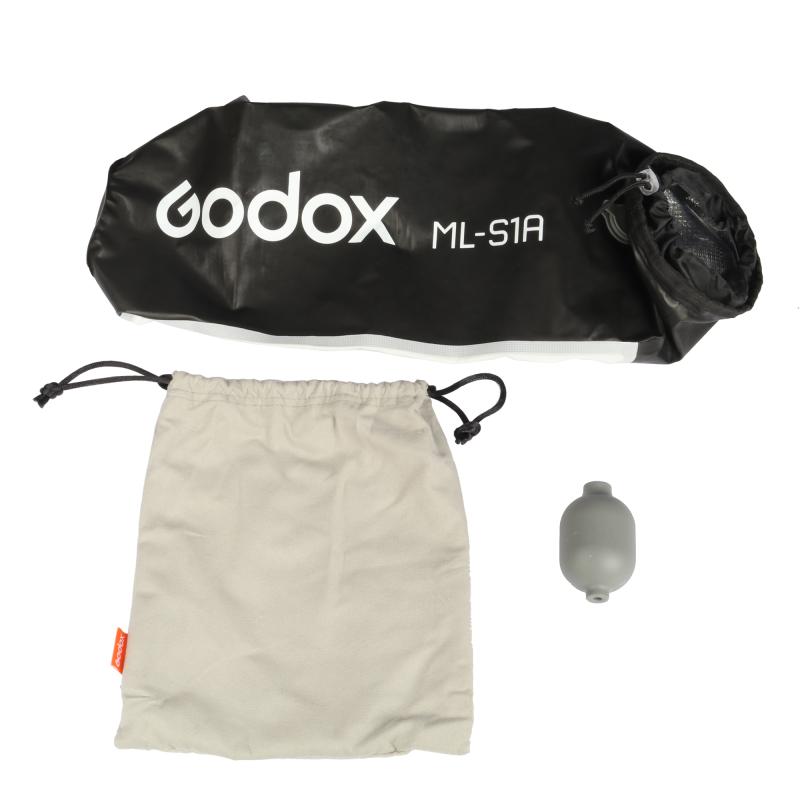 Godox ML-S1A Air Soft Tube är en uppblåsbar cylinderformad ljusformare för Godox ML60IIBi, ML100Bi och ML100R. Ljusformaren är avskärmad med försilvrad insida och sprider ljuset åt ett håll. Ljusformaren används när man vill ha ett mjukare och jämnare ljus och är perfekt för porträtt, produktfotografering och videoproduktioner. Snörlås mot belysningen.