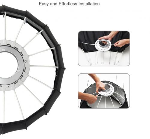 Godox P120L är en lätt Ø120 cm djup parabolisk softbox, med dubbla diffusionsdukar, som ger ett fokuserat mjukt ljus av högsta kvalité. Bowens S