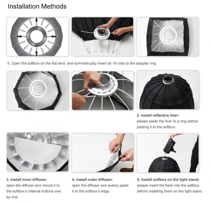 OBS! Softboxen är avsedd för studioblixtar (max temperatur 60°C).