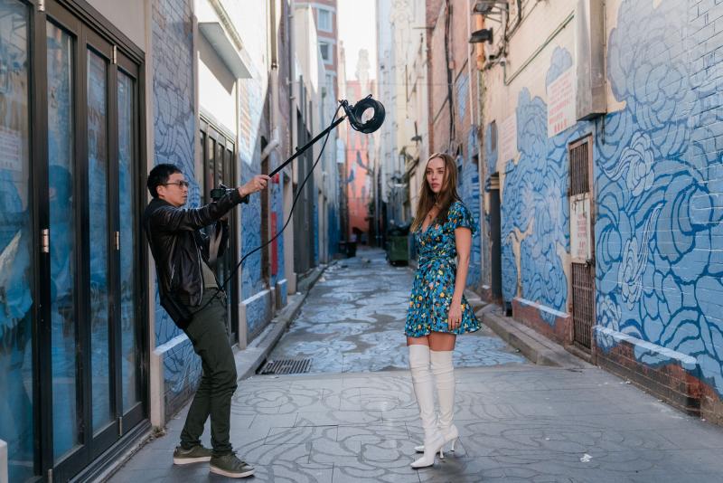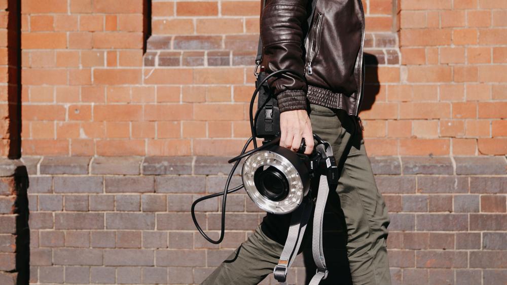 illustrativ bild. På bilden har man monterat ringblixten på en handhållen bom.