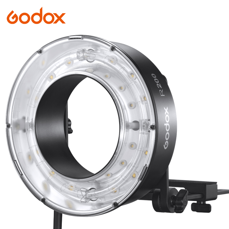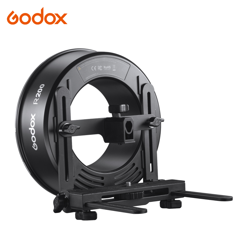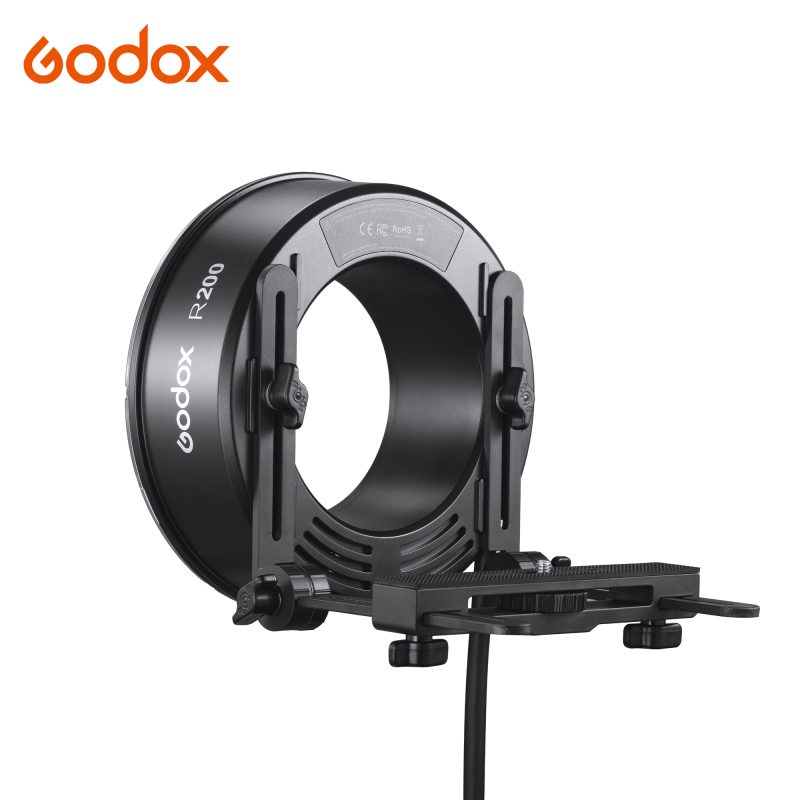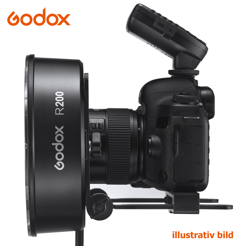 Godox R200 är en 200ws ringblixt (för AD200/ AD200 Pro/ AD200 Pro II), som ger ett otroligt mjukt och fint ljus som är optimalt för porträtt och mode. En annan fördel med att använda ringblixt är att man får runda och mera naturliga reflexer i pupillerna. Ringblixten är egentligen ett tillbehör för Godox AD200, AD200 Pro och AD200 Pro II. Strömförsörjningen till ringblixten sker nämligen via en kabel som ansluts till en Godox AD200 Pro blixt istället för det vanliga blixthuvudet. Styrning och inställning av ringblixten sker genom en radiosändare, som monteras i kamerans blixtsko. (Sändare & AD200/AD200Pro/ AD200 Pro II blixt ingår ej.)