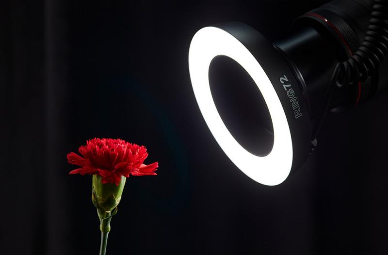 Godox Ring72 Macro LED Ring Light är en praktisk ringbelysning (8W LED) för fotografering av närbilder på t.ex småkryp, blommor och växter. Perfekt även för t.ex porträtt för att få runda reflexer i pupillen eller för fotografering av produktbilder på smycken. Ringbelysningen har flera fördelar mot en traditionell ringblixt, då ringbelysningen kan i stort sett användas på alla kameror, då den till skillnad från en blixt inte behöver kommunicera med kamerahuset. Belysningen har en konstruktion av 72 lysdioder, som avger ett flimmerfritt dagsljus (5600°K) med högt CRI-värde (CRI>96) för korrekt färgåtergivning vid fotografering eller filmning! En annan fördel med ringbelysningen är att den också kan användas om man vill fotografera macro med bibehållen automatik. Ringbelysningen monteras i objektivets filtergänga, vilket ger en optimal placering av ljuset för t.ex makrofotografering (och även t.ex porträtt för att få runda reflexer i pupillen.). Vid extrem makrofotografering är vanliga kamerablixtar nästan helt värdelösa eftersom objektivet riskerar att skugga hela eller delar av motivet.