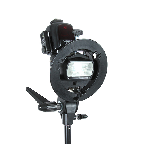 Blixtfästet för kamerablixtar har standard fäste för belysningsstativ och kan även användas handhållet i nederdelen av hållaren. För att kunna montera blixtfästet på ett vanligt kamerastativ, så krävs det att man köper till en JJC 16mm adapter för kamerastativ. (Se underst på sidan under närrelaterat.) Väska medföljer.