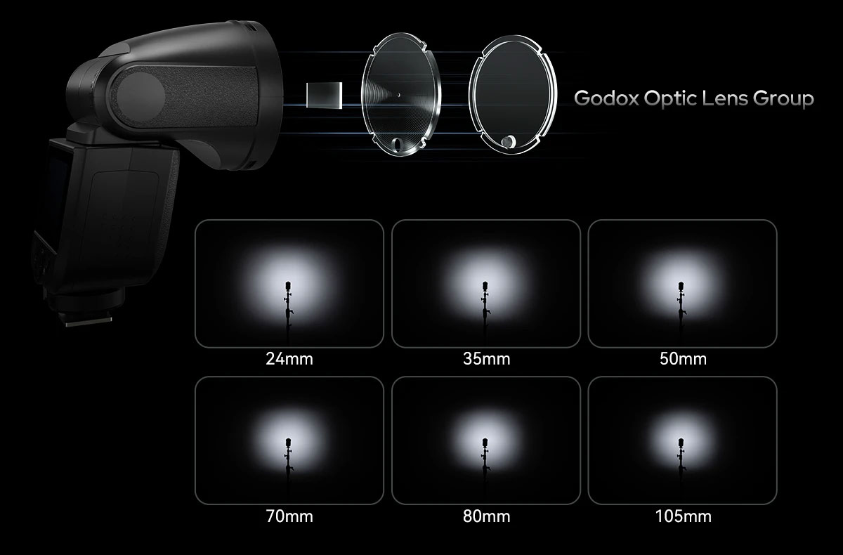 Godox Speedlite V1 MID har ett runt blixthuvud med optisk konstruktion (Godox Optical System) för en mer naturlig och jämn ljusspridning. Bättre anpassat för fler objektiv, då ljusspridningen på V1 MID är anpassat ner till 24mm i brännvidd (V1 har 28mm). En annan fördel med det runda blixthuvudet är att det har ett innovativt magnetfäste, som gör det möjligt att använda en mängd olika ljusformare för att styra och kontrollera ljuset. (Ljusformare ingår ej). Kamerablixten kan användas med full automatik (TTL), helt manuellt eller med stroboskopfunktion (Multi) för att fånga ett snabbt förlopp. Stroboskopfunktion, som är inställbar i styrka, antal blixtar och frekvens, används för att avfyra en snabb serie av blixtar för att fånga t.ex ett snabbt händelseförlopp på en och samma bildruta.