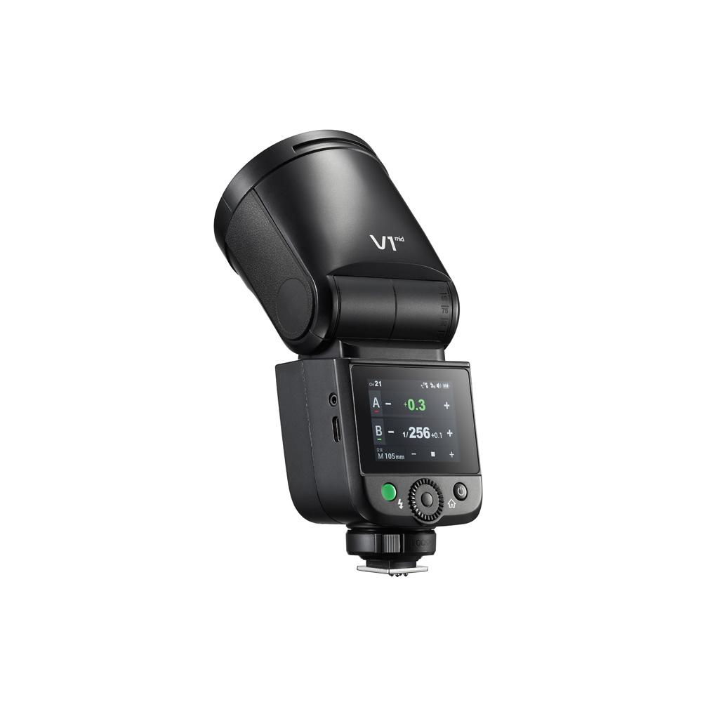 Godox V1 MID är en den senaste kamerablixten i V1-familjen med betydligt kompaktare storlek, mycket modernare design och bättre och jämnare ljusspridning för ett mera naturligt ljus. Blixten är utrustad med TTL-automatik, stöd för High Speed Sync (Slutartider upp till 1/8000s) och färgskärm. Snabba uppladdningstider på 1,7 sekunder.