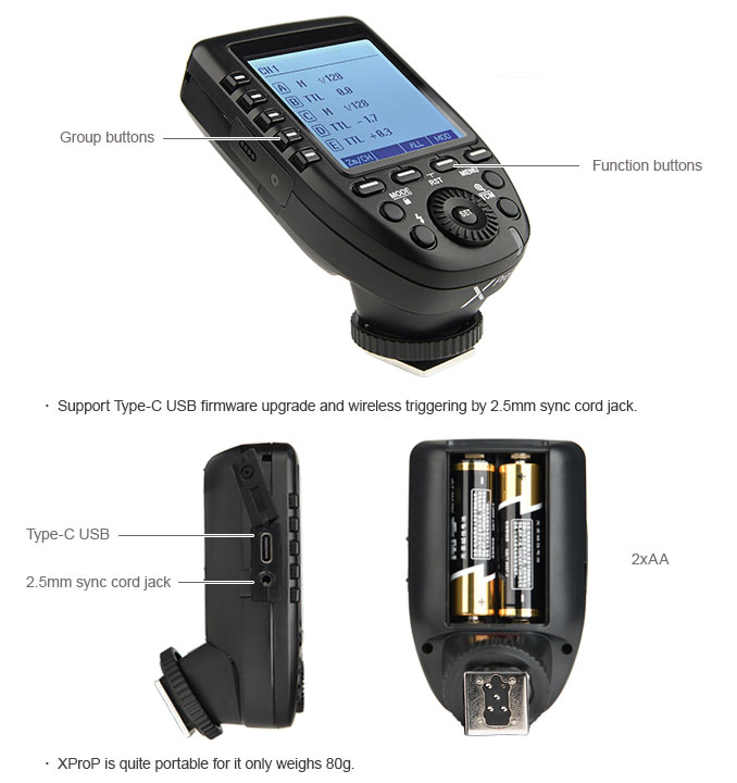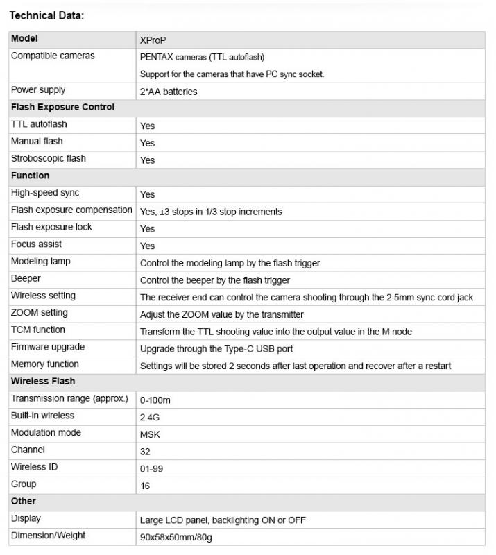 - GODOX X-PRO kan styra Godox kamerablixtar (t.ex Godox TT350 för Pentax), som har inbyggda radiomottagare för Godox Wireless X.
