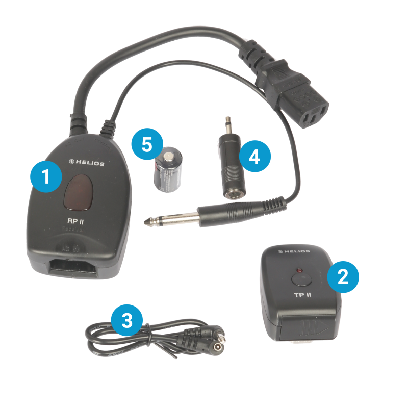 Helios TP-II AC radiosystem används för att utlösa studioblixtar trådlöst, vilket innebär att man slipper störande synk-kablar som är i vägen. Radiomottagaren ansluts mellan studioblixten och eluttaget och är alltså helt batteri-oberoende. Radiomottagaren passar i stort sett till alla moderna studioblixtar, eftersom radiomottagaren har både Ø3,5 mm och Ø6,3 mm standardplugg för anslutning till synk-uttaget i studioblixten. Kompatibelt med Visico VC816TX-radiosystem.