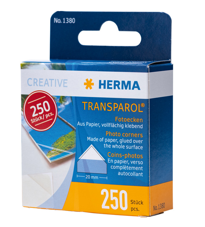 Transparenta fotohörn för pappersbilder, Polaroid eller Instax. Limmet är lösningsmedels- och syrafritt, fotovänligt och arkiveringsbeständigt. Förpackningen innehåller 250st fotohörn.
