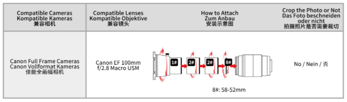 JJC FDA-K1 Digitization Film Adapter Set innehåller en diaduplikator, som används för att smidigt duplicera (kopiera) eller digitalisera 135-film (35mm), såväl negativ som positiv-film. Diaduplikatorn skruvas fast i objektivets filtergänga och är kompatibel med utvalda objektiv från Canon, Nikon, Sony, Laowa och Olympus (Se lista underst). Det följer även med mellanringar , som används för olika objektiv (brännvidder), så att man får rätt avstånd mellan diaduplikatorn och objektivet. Diaduplikatorn har en diffusorskiva, som ska riktas mot lämplig ljuskälla (dagsljus) så att negativet/ positivet blir bra bakgrundsbelyst. Bäst resultat får man om man köper till JJC FDA-LED1 LED-Light Set*, som är avpassad LED-ljuskälla för diaduplikatorn. Det går att rotera diaduplikatorn för fotografering i höjdformatet.