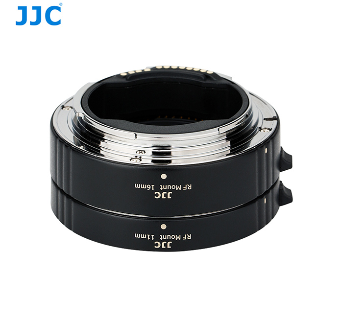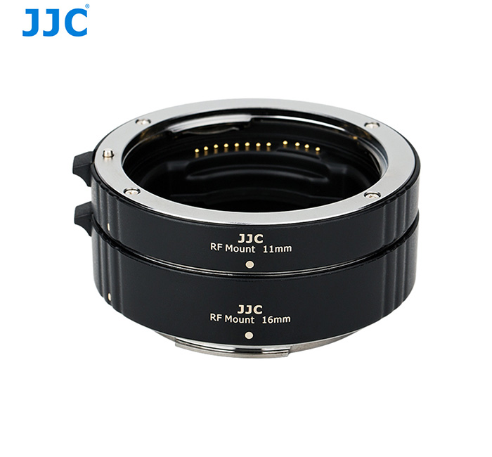 JJC® mellanringssats AET-CRFII för Canon EOS RF består av 2 st mellanringar (11mm &16 mm), som kan användas var för sig eller i kombination med varandra. Mellanringssatsen används för närbildsfotografering och sätts mellan kamerahuset och objektivet. Mellanringssatsen har elektroniska kopplingar för autofokus och TTL-kommunikation mellan objektivet och kamerahuset. . Ljusförlusten som uppstår i mellanringen tar kamerans mätare automatiskt hänsyn till. Det finns inga glaslinser i mellanringssatsen, som kan påverka skärpan. JJC® AET-CRFII levereras med ett vadderat fodral, samt ett främre- och bakre lock. Mellanringssatsen har metallbajonetter och förgyllda elektriska kontakter.