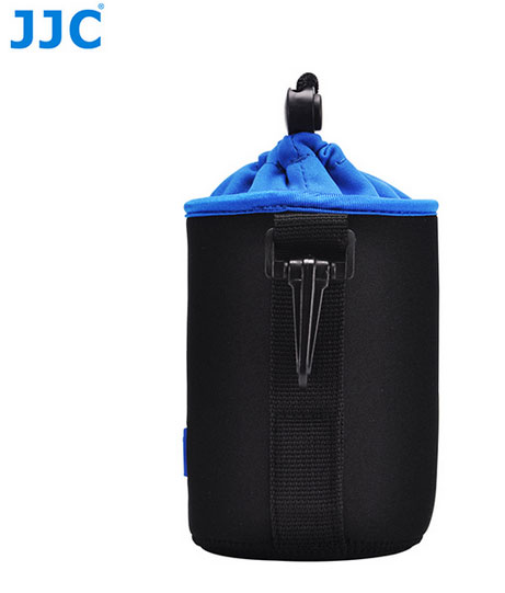 Praktiskt objektivfodral av stötdämpande neopren. Snörlås och kabinhake.