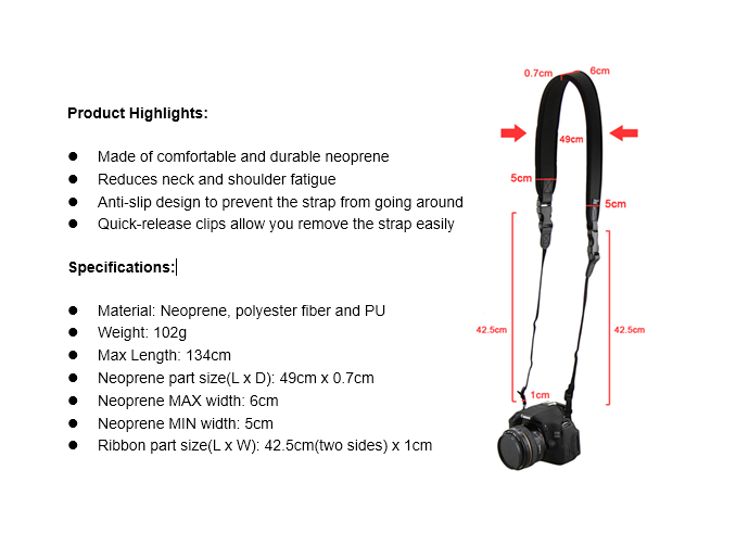 JJS NS-Q1är en mjuk, flexibel, halkfri och mycket komfortabel kamerarem av neopren