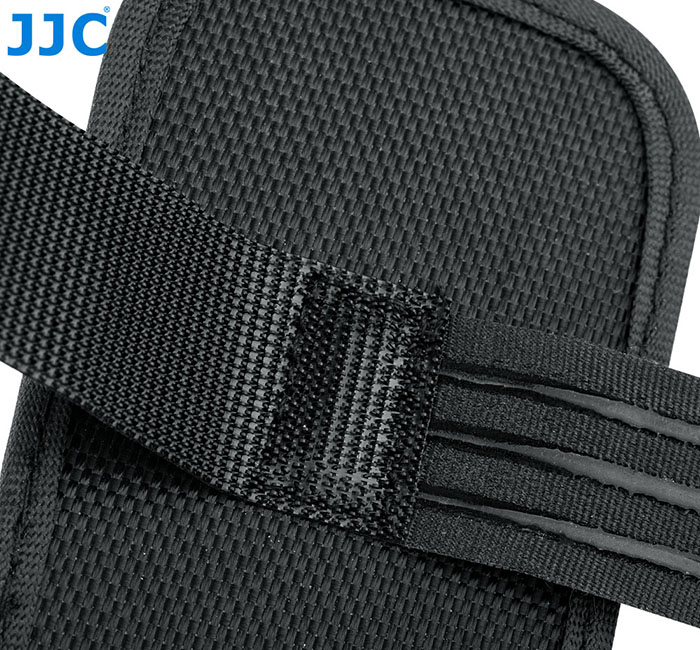 Ett praktiskt fodral för JJC TM LCD timers, som gör det möjligt att förvara fjärrkontrollen i fodralet (på stativbenet) när den inte används. Fodralet har kardborre-band för enkel fastsättning på stativbenet.