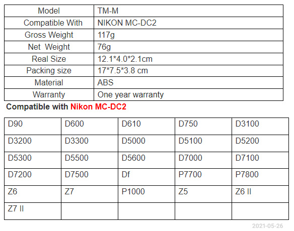 JJC TM LCD TRÅDUTLÖSARE & TIMER ERS.NIKON MC-DC2